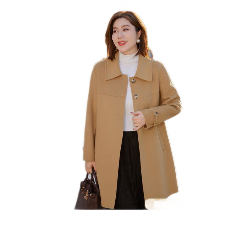纤莉秀2023冬装新款大码女装胖mm高级感气质显瘦翻领双面毛呢外套4435 卡其色 5XL